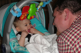 Rylee watched cartoons this morning and patiently waited for her mommy to get ready to take her to the Dr. for her 9 month check-up. She weighed in at 18 lbs and 9 oz today (50th percentile). She was 30 in long (99th percentile)!! Oh, and she now has 4 teeth, her 2 bottom center teeth, one top one in the center and one top one on the side. :)